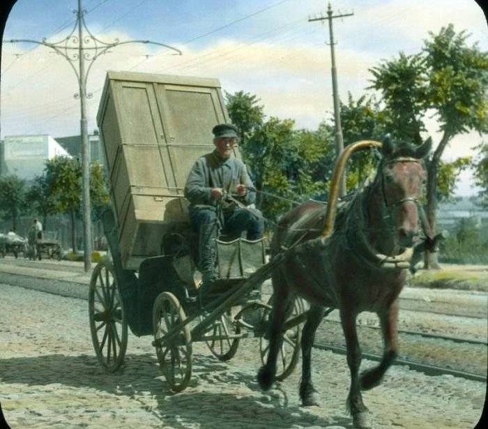 Al llegar a la capital procedentes de todos los rincones de la URSS, los campesinos reproducen sus vestimentas y costumbres rurales. Desde luego que los moscovitas no tienen cara de hambrientos, a pesar de la leyenda del Holodomor.