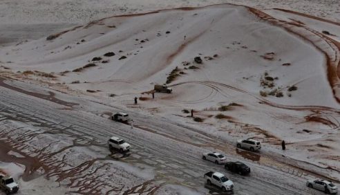 La región de Al Jawf, en Arabia saudí, ha experimentado una nevada que ha convertido el árido paisaje desértico en una rara escena invernal por primera vez desde que hay memoria. Este fenómeno meteorológico sin precedentes se produce tras un período de intensas lluvias y granizo y ha cautivado tanto a los vecinos como a … Sigue leyendo Nieva en el desierto de Arabia saudí por primera vez desde que hay memoria